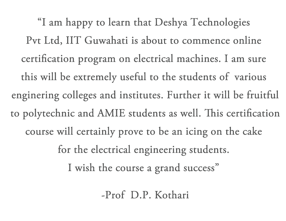 Deshya technologies Pvt Ltd was incepted at Technology Incubation Centre (TIC), IIT Guwahati in 2012 with the commitment to provide world-class e-Learning environment for electrical engineering education. Dr. Sadhna Tyagi (an alumini of IIT Roorkee and Mannheim Business School) and Dr. Praveen Kumar (Faculty of EEE, IITG) guide the company professionals to set new milestones in electrical engineering.